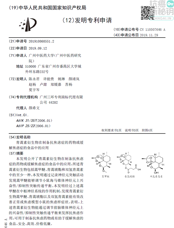 青蒿琥酯可通过抗炎、抗氧化、调节HPA轴和神经递质等多重机制,在动物实验中表现出一定的抗焦虑潜力,尤其适合慢性炎症诱导的焦虑状态。