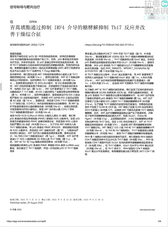青蒿琥酯可诱导异常增殖的免疫细胞(如致病性T细胞或B细胞)凋亡,从而减少免疫系统对自身组织的攻击。这可能有助于缓解干燥综合征中的腺体破坏;抑制纤维化进程: